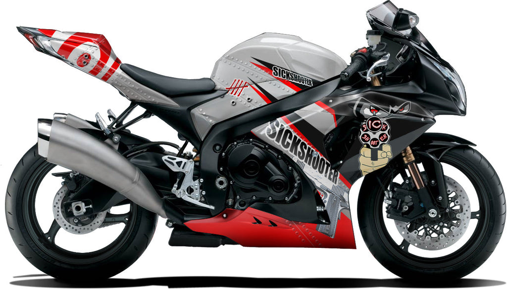 Inspired by our friends at Sickshooter, this Motorcycle Vinyl Wrap design features riveted panels with 3-D bullet holes layered with the menacing Sickshooter logo!